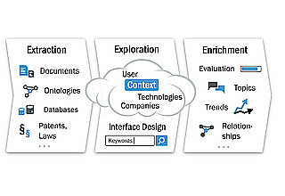 Komplexe Zusammenhänge erschließen sich oft erst, wenn verschiedene Sichtweisen kombiniert werden. Unsere Technologien unterstützen Sie durch die intelligente Verknüpfung mehrerer Informationsquellen bei komplexen Recherche- und Entscheidungsprozessen und helfen Ihnen beim Finden von relevanten Querbezügen in heterogenen oder verteilten Dokumentenbeständen. Hierzu werden Informationen unter Berücksichtigung von Nutzer- und Unternehmensmodellen extrahiert und angereichert, und können anschließend individualisiert exploriert werden. Die Arbeitsgruppe "Data and Knowledge Engineering" (DKE) entwickelt dazu modulare Softwarelösungen: