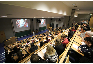 Die Medizinische Fakultät der Martin-Luther-Universität Halle-Wittenberg startet am 16. November 2015 die zweite Runde des im vergangenen Jahr so erfolgreich eingeführten besonderen Projektes Hallesche OP-Wochen, das für Studierende der Medizin in Deutschland einmalig ist. An nunmehr elf Abenden im Zeitraum vom 16. November bis 2. Dezember 2015 zeigen erfahrene Operateure der halleschen Universitätsmedizin typische Operationstechniken aus vielen chirurgischen Fachrichtungen im Rahmen von Live-Operationen oder Interventionen in der Inneren Medizin, die in die Hörsäle übertragen werden. Die Halleschen OP-Wochen richten sich dabei an alle unsere Studierenden aus den Fachrichtungen Medizin, Zahnmedizin sowie Gesundheits- und Pflegewissenschaften sowie im Rahmen der interprofesionellen Lehre an die Schülerinnen und Schüler des Ausbildungszentrums für Gesundheitsfachberufe", sagt Professor Dr. Stefan Plontke, Direktor der Universitätsklinik und Poliklinik für Hals-, Nasen- und Ohrenheilkunde und der Initiator der OP-Wochen.