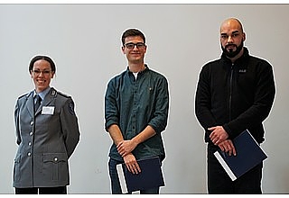 Herr Rother wurde mit seinem Posterbeitrag "Vergleich und Korrelation ausgewählter HRV-Parameter" mit dem 2. Posterpreis ausgezeichnet. Er ist Medizinstudent und promoviert am Bereich Arbeitsmedizin der Medizinischen Fakultät der Otto-von-Guericke-Universität. Frau Schilz gewann den 3. Posterpreis mit dem Beitrag "Validierung des Sigma® Activo Schrittzählers unter standardisierten Bedingungen mittels Videoanalyse". Sie ist Sanitätsoffizier-Anwärterin am Sanitätsunterstützungszentrum Cochem und promoviert ebenfalls am Bereich Arbeitsmedizin.