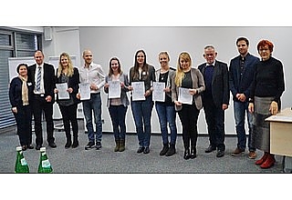 Besonders erfolgreich war unsere Kollegin Frau Annemarie Minow (5. v. l.), die mit dem 3. Preis für ihren Vortrag "Ständige Erreichbarkeit als psychischer Belastungsfaktor bei Führungskräften eines Unternehmens der Sozial- und Gesundheitsbranche in Sachsen-Anhalt" ausgezeichnet wurde. Im aktuellen Wandel der Arbeitswelt stehen Themen wie Digitalisierung, Entgrenzung und die damit verbundene ständige Erreichbarkeit der Arbeitnehmer zunehmend im Vordergrund. Im Rahmen einer Mitarbeiterbefragung zur Gefährdungsbeurteilung psychosozialer Belastungen bei einem Unternehmen der Sozial- und Gesundheitsbranche in Sachsen-Anhalt wurde auf der Ebene der Führungskräfte ein hoher Handlungsbedarf hinsichtlich der ständigen Erreichbarkeit festgestellt. In ihrer Studie ermittelte Frau Minow mithilfe von problemzentrierten Interviews die Hintergründe zu diesem Ergebnis und die Bedingungen, unter denen die Erreichbarkeit von den Führungskräften als beanspruchend erlebt wird. In einem weiteren Schritt ihrer Forschungsarbeit leitete sie Handlungsempfehlungen zur Verbesserung der Arbeitsbedingungen ab, die vom Unternehmen gern aufgenommen wurden.