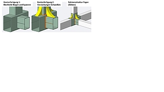 Im Hinblick auf die geringe Stückzahl ist eine kostengünstige Umsetzung der Rahmenstrukturen angestrebt. Der Ablauf der geplanten Fertigungskette ist schematisch in folgender Grafik zu sehen.