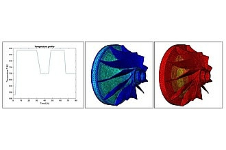 Hochtemperaturbauteile, wie sie z.B. in Kraftwerken zu finden sind, müssen sowohl thermischen als auch mechanischen Beanspruchungen standhalten, wobei sich die Kombination dieser Prozesse negativ auf die Lebensdauer der Komponenten auswirken kann. Durch das Hoch- und Runterfahren der Anlagen treten außerdem zyklische Beanspruchungen auf, deren Simulation zu numerisch komplexen Zeitintegrationen mit kleinen Schrittweiten führt. Aus diesem Grund wurde das Materialverhalten bisher mit monotoner Belastung oder nur für wenige Zyklen simuliert, obwohl diese massgeblich für Ermüdungserscheinungen sein können. Der Mehr-Zeitskalen-Ansatz wird zur Modellierung von Plastizität, Schädigung und Ermüdung eingesetzt, mit der Grundidee, durch Entkopplung der Gleichungen separate Gleichungssysteme für die verschiedenen Zeitskalen zu schaffen und diese getrennt voneinander zu lösen. Dabei wird zwischen einer Zeitskala für die quasi-statische ("langsame") und einer für die hochfrequente ("schnelle", zyklische) Belastung unterschieden. Die Anwendung dessen in Kombination mit einem kalibrierten Materialmodell reduziert die Rechenzeit erheblich und bietet somit nicht nur die Möglichkeit, eine hohe Anzahl an Zyklen zu betrachten, sondern resultiert auch in einergenaueren Bestimmung und Optimierung der Lebensdauer.